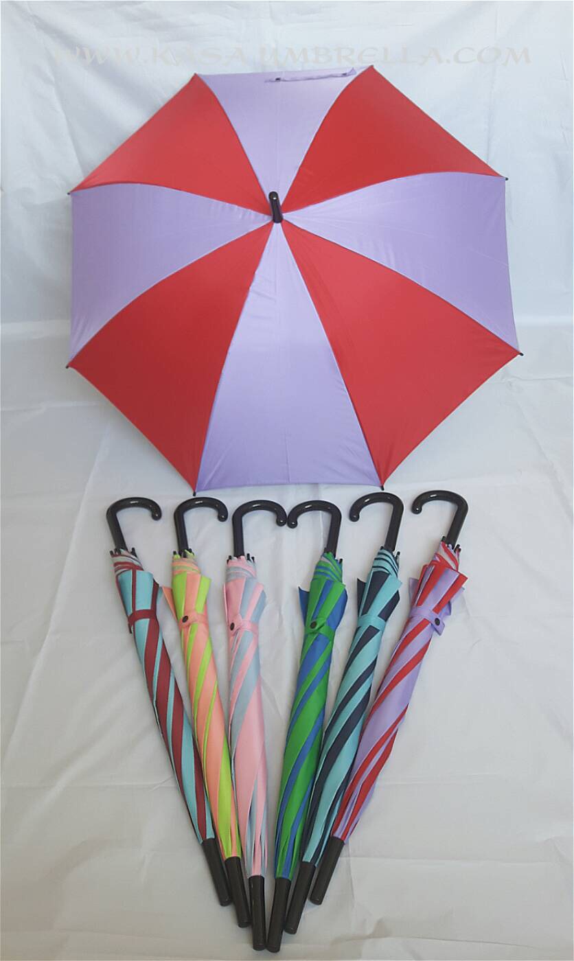 ร่ม22 นิ้ว เปิดออโต้ แกนเหล็ก ซี่ 8ก้าน ผ้าสลับสี(ยูวีใน) ด้ามพลาสติกงอสีดำ
