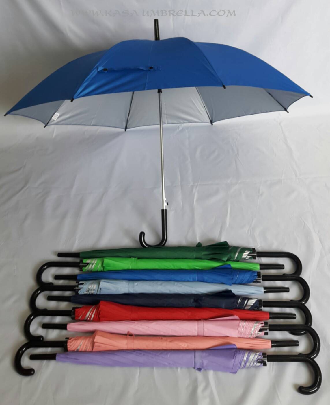 ร่ม 24นิ้ว เปิดออโต้ แกนเหล็ก 10มิล ซี่ 8ก้าน ผ้าสีพื้น(ยูวีใน) ด้ามพลาสติกงอสีดำ