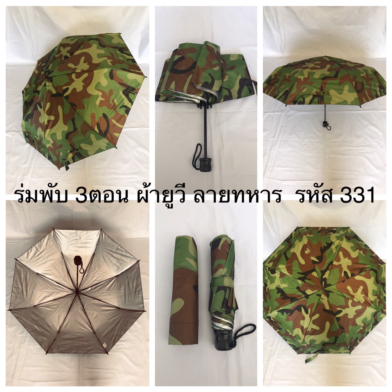 ร่มพับ 3 ตอน มือกาง แกนเหล็ก ซี่ 8ก้าน ผ้าลายทหาร(เคลือบยูวีสีเงิน) ด้ามพลาสติก